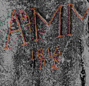 AMM dated 1814 coincides with the date on the South Face and there are two other sets of initials.