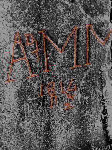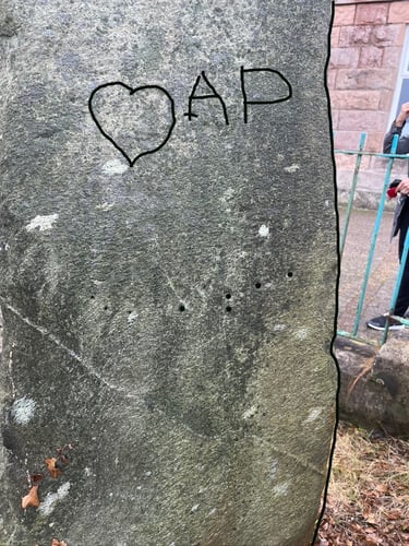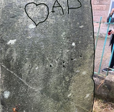 There are many markings on the stone from the time of the battle of Waterloo, when many soldiers from the area were conscripted into Wellington's army, to a variety of runes which have not been translated.